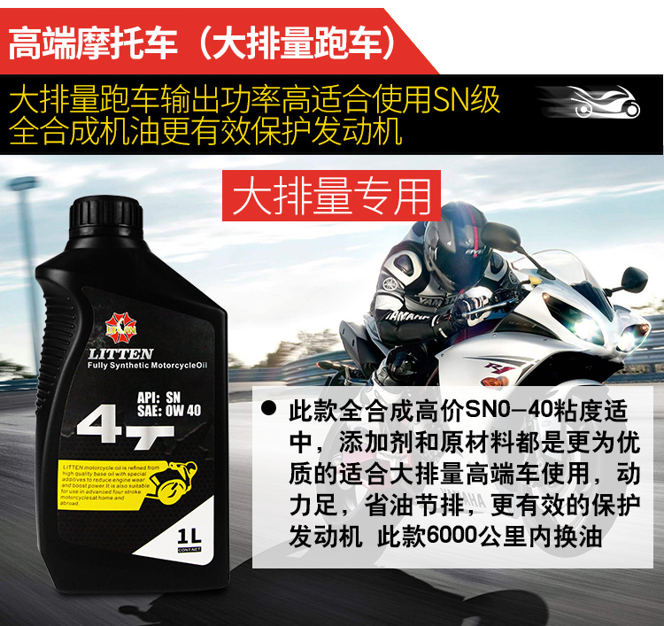 > 摩托车合成油 4T SN 0W-40
